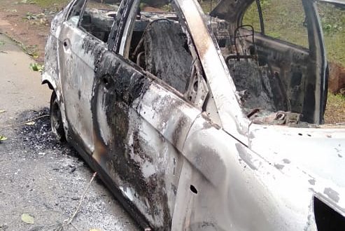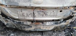 ಶಿವಮೊಗ್ಗ ನೊಂದಣಿಯ ಟಾಟಾ ಇಂಡಿಗೋ ಕಾರು ಸಂಪೂರ್ಣ ಸುಟ್ಟು ಕರಕಲಾಗಿದೆ.
