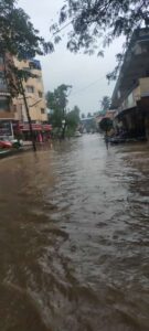ಶಿವಮೊಗ್ಗ: ಇಂದು ಸಂಜೆ ವೇಳೆ ಅರ್ಧ ಗಂಟೆ ಸುರಿದ ಮಳೆ ಶಿವಮೊಗ್ಗ ನಗರದಲ್ಲಿ ಅವಾಂತರವನ್ನೇ ಸೃಷ್ಟಿಸಿದೆ. ಕಳೆದ ಮೂರು ದಿನಗಳಿಂದ ಮಧ್ಯಾಹ್ನದ ಬಳಿಕ ಉತ್ತಮ ಮಳೆಯಾಗುತ್ತಿದೆ. ಆದರೆ ಇಂದು ಸಂಜೆ ನಾಲ್ಕು ಗಂಟೆ ಸುಮಾರಿಗೆ ಆರಂಭವಾದ ಧಾರಾಕಾರ ಮಳೆಯಿಂದಾಗಿ ತಗ್ಗು ಪ್ರದೇಶಗಳಿಗೆ ನೀರು ನುಗ್ಗುವ ಆತಂಕ ಎದುರಾಗಿತ್ತು. ಎಲ್ಲ ರಸ್ತೆಗಳು ಜಲಾವೃತಗೊಂಡು ವಾಹನ ಸವಾರರು ಪರದಾಡುವಂತಾಗಿತ್ತು. ಶಿವಮೊಗ್ಗ ಪಾರ್ಕ್ ಬಡಾವಣೆಯಲ್ಲಿರುವ ಜಿಲ್ಲಾ ಕಾಂಗ್ರೆಸ್ ಕಚೇರಿ ಎದುರಿನ ರಸ್ತೆ ಮೇಲೆ ಬರೋಬ್ಬರಿ ಎರಡು ಅಡಿಗೂ ಹೆಚ್ಚು ನೀರು ನಿಂತಿತ್ತು. ಅರ್ಧ ಗಂಟೆ ಸುರಿದ ಧಾರಾಕಾರ ಮಳೆ ಇನ್ನರ್ಧ ಗಂಟೆ ಸುರಿದಿದ್ದರೆ ಶಿವಮೊಗ್ಗದ ತಗ್ಗು ಪ್ರದೇಶಗಳಲ್ಲಿರುವ ಮನೆಗಳೆಲ್ಲವುಗಳಿಗೂ ನೀರು ನುಗ್ಗುವ ಆತಂಕ ಎದುರಾಗಿತ್ತು.